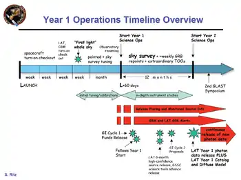 GLAST كان من المتوقع أن تكون قد حولت إلى "وضع مسح السماء " في 2008/06/26 بحيث تبدأ كاسحة في مجال الرؤية في سماء كامل كل ثلاث ساعات (كل مدارين).