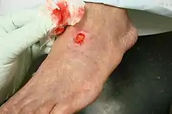 |CitationClass=تم تجاهله (مساعدة) - Mills JL, Sr; Conte, MS; Armstrong, DG; Pomposelli, FB; Schanzer, A; Sidawy, AN; Andros, G; Society for Vascular Surgery Lower Extremity Guidelines, Committee (January 2014). "The Society for Vascular Surgery Lower Extremity Threatened Limb Classification System: risk stratification based on wound, ischemia, and foot infection (WIfI)". Journal of vascular surgery. 59 (1): 220–34.e1-2. doi:10.1016/j.jvs.2013.08.003. PMID 24126108. الوسيط