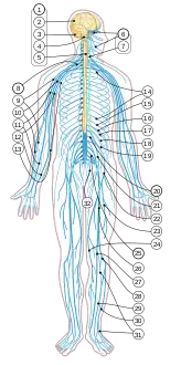 ![]() رسم تخطيطي يوضح الجهاز العصبى المركزي رسم تخطيطي يوضح الجهاز العصبى المركزي | |