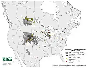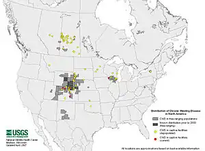 |CitationClass=تم تجاهله (مساعدة) - "Wasting Disease Confirmed in State". February 13, 2011. مؤرشف من الأصل في 24 مارس 2012. الوسيط