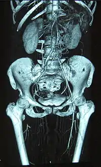 ![]() انسداد كامل للشريان الفخذي الأيمن وضيق في الأيسر كما هو موضح في حالة مرض بورغر . انسداد كامل للشريان الفخذي الأيمن وضيق في الأيسر كما هو موضح في حالة مرض بورغر . | |