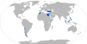 الدول المستخدمة الحالية باللون الازرق. الدول المستخدمة السابقة باللون الاحمر
