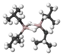 بنية ممثلة بأسلوب الكريات والعصي لمركب هيدريد ثنائي إيزوبوتيل الألومنيوم.