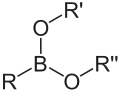 يتفاعل حمض البورونيك RB(OH)2 مع بيفلوريد البوتاسيوم [K[HF2 ليشكل أملاح ثلاثي فلوروبورات عضوية [K[RBF3،[6] والتي تعد مركبات طليعيّة لثنائي فلوريد ألكيلات RBF2 وأريلات البورون المحبة للنواة (النكليوفيلية) ArBF2.[7] تكون الأملاح أكثر استقراراً من أحماض البورونيك نفسها، وتستخدم على سبيل المثال من أجل ألكلة ألدهيدات معيّنة.