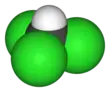 | تمثيل بنيوي لمركب الكلوروفورم أحد مركبات الكلور العضوية المعروفة. |