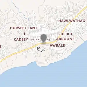مَرْكة مدينة ساحلية صومالية وميناء صومالي يطل على المحيط الهندي تقع حوالي 92 كم جنوب مقديشو.[2][3][4] يوجد بين سكانها العديد من الإيطاليين وفيها مزارع موز كثيرة يملكها الإيطاليون الذين يحتكرون زراعة وتصدير هذا المحصول. معظم بيوتها من الحجر، وتتكوّن من طبقة أو طبقتين. تعد مدينة مركا العاصمة الثانية بعد مقديشو.
