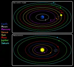 يظهر جلياً لأي متطلعٍ إلى السماء أن الأرض تبقى في مكان واحد بينما يبزغ كل شيء في السماء ويغرب مرة في اليوم. وبالمراقبة الدقيقة، يُمكن للرائي أن يرصد حركاتٍ أكثر تعقيداً، فالشمس تتحرك في دائرة ببطء خلال السنة، وتتحرك الكواكب بشكل مشابه، لكنها تتحرك أحياناً تتحرك قليلاً في اتجاهٍ معاكس (الحركة الراجعة).