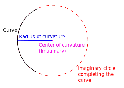 - لقد عرف كوشى مركز الانحناء C على أنه نقطة التقاطع لخطين متقاربين، متناهين الصغر وعمودين على المنحنى.