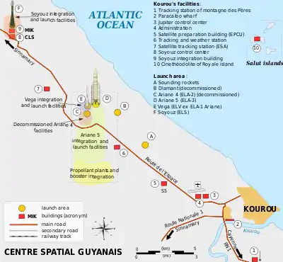 |CitationClass=تم تجاهله (مساعدة) - "Installation of the Guiana Space Center in French Guiana"نسخة محفوظة May 1, 2016, على موقع واي باك مشين.. Guiana Space Centre official website