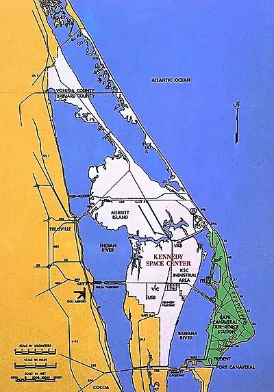 |CitationClass=تم تجاهله (مساعدة) - Charles D. Benson and William Barnaby Faherty. "Land, Lots of Land – Much of It Marshy". Moonport: A History of Apollo Launch Facilities and Operations. NASA. مؤرشف من الأصل في 14 يوليو 2019. اطلع عليه بتاريخ 27 أغسطس 2009. الوسيط
