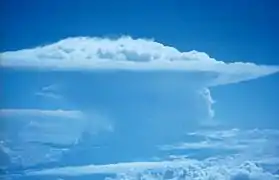 - قمة التجاوز هي قبة ترتفع فوق العاصفة الرعدية. يرتبط بالطقس القاسي.