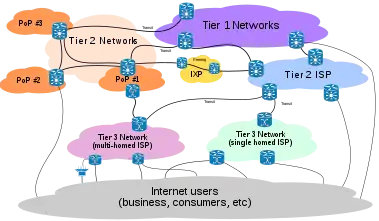 كما يدفع عملاء مزودي خدمة الإنترنت من أجل الحصول على الخدمة، مزودي خدمات الإنترنت(ISP)يدفعون للوصول إلى الإنترنت إلى مزود خدمة الإنترنت الرئيسي (UPSTREAM ISP) حيث تمتلك شبكة كبيرة مقارنة بمزودين الخدمة المتعاقدين معها وهي قادرة على توصيل مقدمي خدمة الإنترنت المتعاقدين معها إلى اجزاء من شبكة الإنترنت لا يمكن لمقدمي خدمات الإنترنت وحدهم الوصول إليها. في أبسط الحالات، اتصال واحد يتم انشائه لمزود الخدمة الرئيسي(UPSTREAM ISP)ويستخدم لنقل البيانات إلى أو من مجالات الإنترنت خارج الشبكة المنزلية، وهذا النمط من الترابط غالبا ما يتتالى عدة مرات حتى الوصول إلى ناقل من المستوى 1. في الواقع فإن الحالة غالبا ماتكون أكثر تعقيدا حيث يكون لمزودي خدمة الإنترنت اتصالات منفصلة ومتعددة مع مزود خدمة الأنترنت الرئيسي عن طريق نقاط مشاركة بروتوكول خدمة بريد (POP) متعددة أو أنهم قد يكونون عملاء لأكثر من مزود خدمة إنترنت رئيسي وربما يكون لديها اتصال إلى كل واحدة منها عن طريق نقطة أو أكثر من نقاط المشاركة.