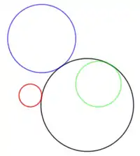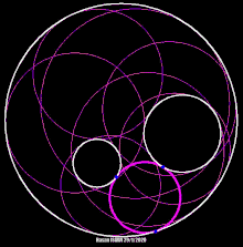 بشكل عام فإن ثلاث دوائر متباعدة لها ثمانية دوائر مختلفة تمسها. وهذه الدوائر الثمانية هي حل مسألة أبولونيوس.