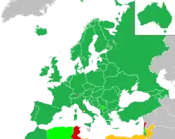 خريطة توضح جميع الدول التي شاركت في مسابقة الأغنية الأوروبية. والدول المؤهلة للقيام بذلك: