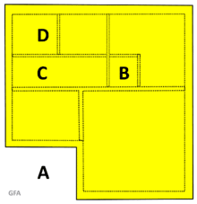 المساحة الطابقية (بالإنجليزية: Floor area أو اختصارا GFA) هو مصطلح معماري، إنشائي، عقاري يعبّر عن مجموع مساحات البناء المسقوفة ضمن قطعة الأرض ولجميع طوابق البناء. ويستثنى كل جزء من حساب المساحة الطابقية إذا كان مستثنًا من حساب البناء، كما أن هناك استثناءات أخرى لاتدخل ضمن حساب المساحة منها طابق الأقبية وطابق السطح وكل أو بعض طوابق التسوية حسب الحالة. ويُسمى حاصل قسمة مجموع المساحات الطابقية ضمن قطعة لأرض على مساحة قطعة الأرض: النسبة الطابقية للبناء. [1][2]