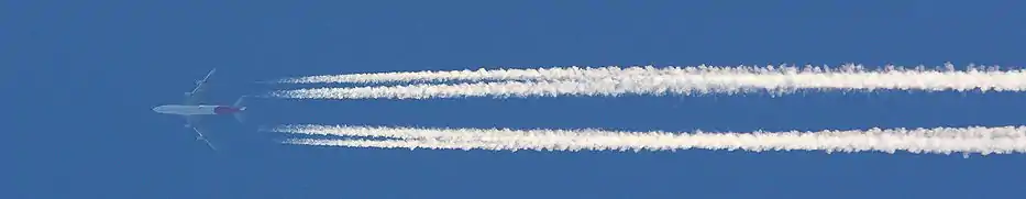 وهي الخطوط التي تتولد من الطائرة في السماء وهي عبارة بخار الماء المتكثف الناتج عن عادم محرك الطائرة. عندما تبرد الغازات الخارجة من عادم الطائرة في الهواء المحيط بها، تتولد قطرات صغيرة من الماء، واذا كان الهواء أكثر برودة فعندها تتولد بلورات صغيرة من الثلج.