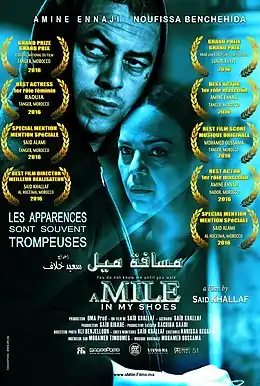 |CitationClass=تم تجاهله (مساعدة) - الفيلم المغربي “مسافة ميل بحذائي” في مهرجان وهران للفيلم العربي نسخة محفوظة 23 مايو 2017 على موقع واي باك مشين.