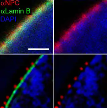 - Maul, Gerd G; Deaven, Larry (1977). "Quantitative Determination of Nuclear Pore Complexes in Cycling Cells with Differing DNA Content". Journal of Cell Biology. 73: 748–760. doi:10.1083/jcb.73.3.748. مؤرشف من الأصل في 17 يونيو 2018. اطلع عليه بتاريخ 12 ديسمبر 2014. الوسيط
