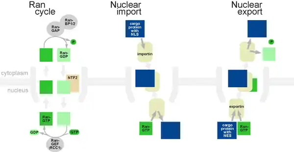 ![]() Diagram of human cell nucleus. Nuclear pore labeled at bottom left | |