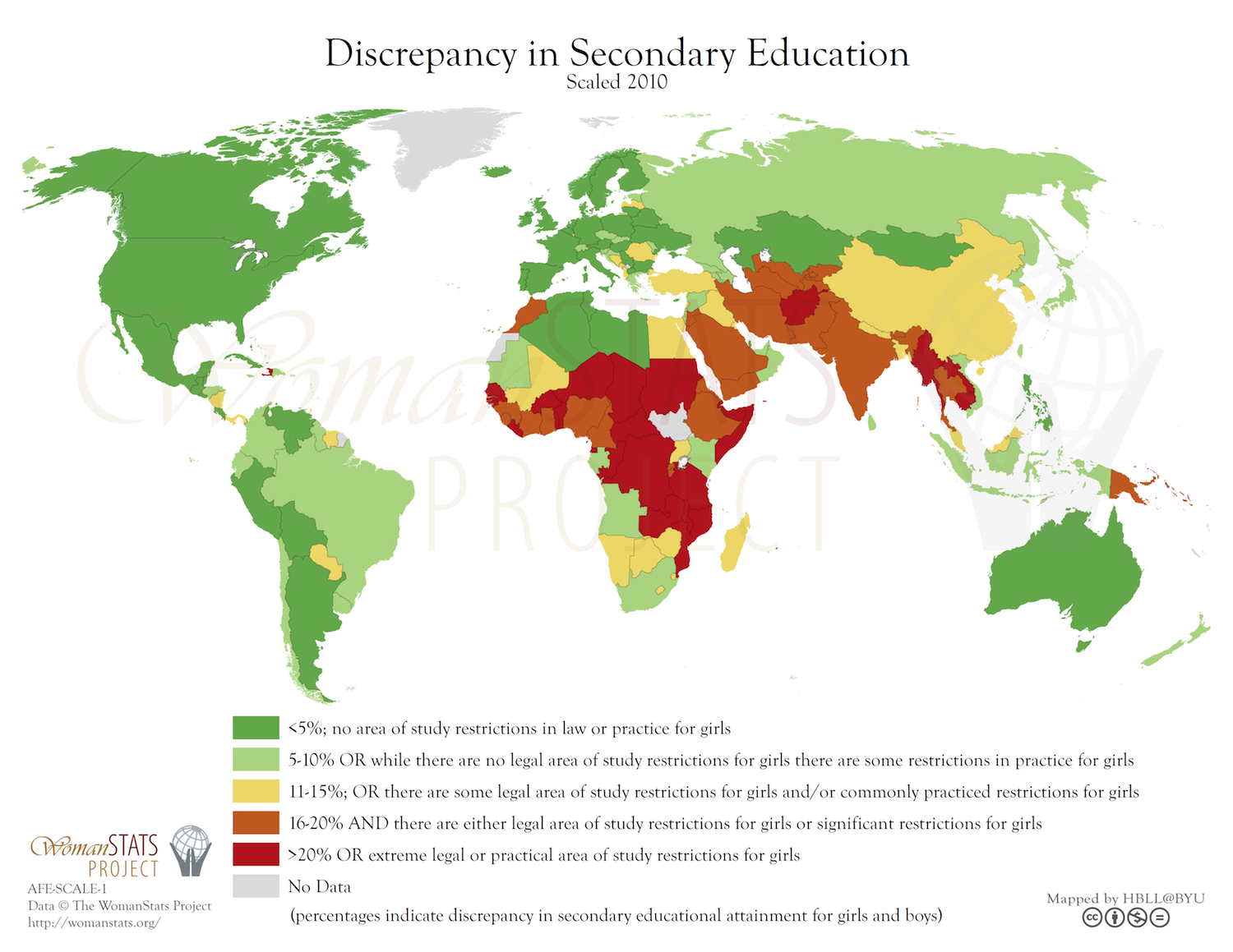 طورت المُقرِّرة الخاصة للأمم المتحدة كاترينا توماسيفكي إطار «أ4» بشأن الحق في التعليم. يشمل إطار «أ4» التوافر، وإمكانية الوصول، والمقبولية، والقدرة على التكيف، باعتبارها أساسية لمؤسسة التعليم. ومع ذلك، تُحرم الفتيات في العديد من البلدان المتخلفة من التعليم الثانوي. تواجه بلدان مثل السودان والصومال وتايلاند وأفغانستان، أعلى درجة من عدم الإنصاف عندما يتعلق الأمر بالتحيز الجندري.[8]