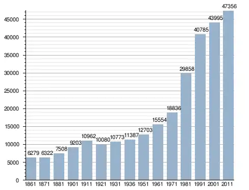 في سنة 1861 بلغ عدد السكان 6٬279 نسمة، وتطور العدد ليصل في سنة 2011 لـ 47٬356 نسمة.