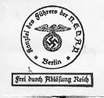 مستشارية هتلر، المعروفة رسميًا باسم Kanzlei des Führers der NSDAP (" مستشارية الفوهرر للحزب النازي " ؛ اختصارًا باسم KdF) [lower-alpha 1] منظمة للحزب النازي. تُعرف الوكالة أيضًا باسم Privatkanzlei des Führers ("المستشارية الخاصة للفوهرر ")، وعملت كهيئة استشارية خاصة لأدولف هتلر، حيث تعاملت مع قضايا مختلفة تتعلق بمسائل مثل الشكاوى ضد مسؤولي الحزب، والاستئنافات من محاكم الحزب، والأحكام الرسمية، والعفو وشؤون هتلر الشخصية. كانت مستشارية الفوهرر أيضًا لاعبًا رئيسيًا في برنامج القتل الرحيم النازي.