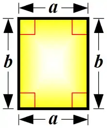 يسمى الضلع الأطول في المستطيل الطول، والضلع الأقصر العرض. وتكون مساحة المستطيل حاصل ضرب طوله وعرضه.
