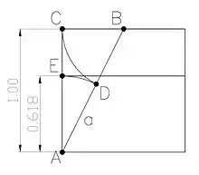 من الممكن إنشاء المستطيل الذهبي باستخدام إنشاءات الفرجار والمسطرة باتباع الخطوات التالية والموضحة في الشكل المجاور: