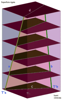 مثال لخطوط متخالفة, محددة في هذة الحالة سطح مسطر