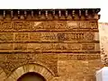 والواجهة ذات تركيب محوري تناظري تتكون من ثلاثة أبواب تعلوها ألواح ذات زخارف نباتية وهندسية بالإضافة نقوش مكتوبة بالخط الكوفي البارز حيث تم استعمال الحجر الطري مما أضفى على المعلم رونقا خاصا.