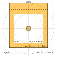 | المساحة | مساحته مع الزيادات الخارجية حوالي ستة أفدنة ونصف الفدان |