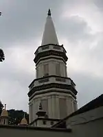 مسجد الحاجة فاطمة محاط بجدار عال، ويضم مجمع مسجد الحاجة فاطمة على قاعة الصلاة وضريح وسكن الإمام ومنطقة الوضوء والعديد من المرفقات وحديقة، ولعل السمة الأكثر غرابة هي المئذنة المميزة التي صممها مهندس معماري أوروبي مجهول، تميل المئذنة حوالي ست درجات قبالة المركز منحرفه من الشارع لمواجهة مكة المكرمة، وتحيط الشرفات بقاعة الصلاة من ثلاث جهات، وكانت القاعة قد تم إعادة تصميمها في عام 1930 من قبل المهندسين المعماريين تشونغ وونغ، وتصميم المبني تم من قبل المقاولين الفرنسي بوسارد وموبين، خمس مأذن تشكل واجهة المبنى، أحدهم كبيرة ومركزية ويحيط بها المآذن الصغيرة أما المدخل، للمسجد قبة بصلية الشكل مع 12 نافذة منها الأصفر والأخضر وذات زجاج ملون .