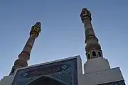 منظر أمامي لمنارتي المسجد وهما في مرحلة البناء
