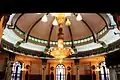 تحتوي اطراف القبة الرئيسية على زجاج معشق يسمح بمرور الضوء -اشعة الشمس- داخل المسجد عبر 56 نافذة حول القبة المصممة على الطراز الإسلامي، بالإضافة إلى أرابيسك ونقوش الجدران والنوافذ الإسلامية، ومصلى نسائي خشبي -معلق- مرتفع في المنتصف الأخير من المسجد، يتسع لحوالي 500 مصلية. بالإضافة إلى المرافق الخدمية للمسجد حيث خصصت أماكن للوضوء ودورات المياه وقاعات مريحة للعبادة مجهزة بالكامل.