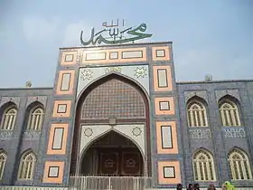 تم تنفيذ بناء المسجد من قبل متخصصين اتمعوا من جميع أنحاء باكستان والهند ومنهم سيد البنائين من راجستان الهند والحرفيين من مولتان للبلاط والفسيفساء والخشب والرسامين والخطاطين من كراتشي، وأقيمت ورش عمل لتدريب الحرفيين، ادى ذلك لتصميم مسجد يعتبر مزيج من الأساليب الإسلامية في البناء، وذلك باستخدام المواد النادرة والتقليدية مثل العاج وخشب الساج والعقيق اليماني جنبا إلى جنب مع عناصر الصناعية مثل الحجر الاصطناعي تم انتقائه على نطاق واسع في استخدامها، وجلب بناة العناصر الأسلوبية من لاهور القريبة من موقع المسجد، وكذلك تم جلب بعض عناصر البناء من إيران وإسبانيا وتركيا .