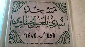 ![]() لوحة تحكل اسم مسجد سيدي بلحسن الحلفاوي | |