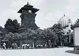 المبنى الرئيسي للبرج والمسجد المُقبّب.