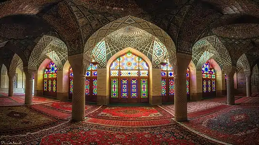 - Mosque of Whirling Colours: A Mixture of Architecture and Art in Nasīr al-Mulk Mosque in Shiraz, Iran, Cem Nizamoglu, MuslimHeritage.com نسخة محفوظة 11 مايو 2016 على موقع واي باك مشين.