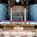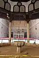 الفسقية ويظهر من خلالها دكة المبلغ وإيوان القبلة