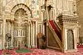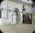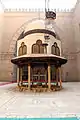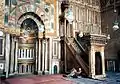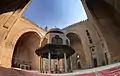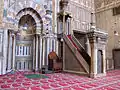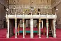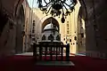 دكة المبلغ ويظهر أماها الصحن المكشوف تتوسطه الفسقية