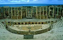 وتستند المدرجات على جدار سميك من الحجر الجيري يحيط به جدار آخر وقد تم الربط بين الجدارين بمجموعة من الأقواس والأقبية حيث يعد الجدار الخارجي دعامة قوية للجدار الداخلي وقد استخدمت مداميك الطوب الأحمر في هذا الجدار، وهو الطراز السائد في المباني الرومانية عامة حيث أن له دورا معماريا في التقوية كما أنه يعطي شكلا جماليا للمبنى ولقد نشأ بين هذين الجدارين ممر مغطي بالأقبية يحيط بالمبنى كان يستخدمه العاملون به.