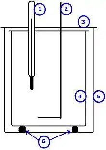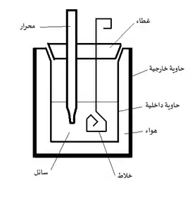 لعدم السماح بتساقط الماء المتكثف عمن على الجسم يمكن جمعها في بوتقة رقيقة من البلاتين أسفله. يمكن بتلك الطريقة تعيين الحرارة النوعية لمادة بدقة عالية.