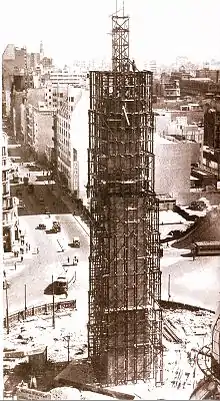 بدا بناء المسلة في 20 مارس 1936 ، وانتهى البناء وافتتح النصب في 23 مايو 1936، قام المهندس المعمارى البرتو بريبيتش بتصمميمها بناء على طلب من رئيس بلدية ماريانو دي، يبلغ ارتفاع المسلة 67.5 م، ولها مدخل واحد فقط (في جانبها الغربي) وعلى قمتها هناك أربع نوافذ، لا يمكن الوصول إليها إلا أن عن طريق درج، وفي شهر نوفمبر 2005 تم ترميم المسلة بشكل كامل .[1]