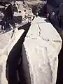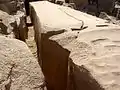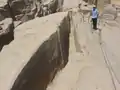 لا يزال السطح السفلي للمسلة بطول 42 متر متصلا بالصخرة الأرضية التي تقطع منها . ويبدو على المسلة بعض آثار تدل على محاولات لإنقاذ جزء منها، وربما كانت تلك المحاولات في عهد تحتمس الثالث. [2]