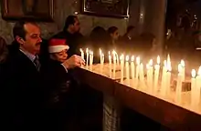أكثر من نصف المسيحيين في الأراضي الفلسطينية يتبعون كنيسة الروم الأرثوذكس في القدس (52%)،[161] وهي إحدى الكنائس الأرثوذكسية الستة عشر ويترأسها البطريرك ثيوفيلوس الثالث. وغالبيّة أتباع هذه الكنيسة معظمهم متكلمون بالعربية، ويرعاهم كهنة عرب متزوجون وكذلك أعضاء أخوية القبر المقدس. ومنذ قرون، ترعى أخوية القبر المقدس مصالح الأرثوذكس اليونانيين في الأرض المقدسة، وتهتم بالحفاظ على مكانة الكنيسة الأرثوذكسية في الأماكن المقدسة لتحفظ على الطبيعة الهيلينية للبطريركية. تمتلك بطريركية القدس الأرثوذكسية عدداً كبيراً من الأراضي والمباني، فهي تمتلك حوالي ثلث الأبنية السكنية في القدس الشرقية. يأتي في المرتبة الثانية المجموعة الكاثوليكية، وتشكل الطائفة الرومانية الكاثوليكية حصة الأسد من طوائف الكاثوليك؛ وتتمثل في كنيسة اللاتين في القدس التي يرأسها بييرباتيستا بيتزابالا ويشكل أتباع هذه الكنيسة 30.5% من مسيحيي الأراضي الفلسطينية، من ثم كنيسة الروم الملكيين الكاثوليك ويُشكلون حوالي 5.7% من مسيحيي فلسطين.[162] كما أنّ هناك العديد من الطوائف الأخرى مثل الموارنة والسريان الأرثوذكس والسريان الكاثوليك والأقباط، ولهذه الكنائس وجود تاريخي في فلسطين التاريخية.[163] ويتركز أتباع الكنيسة السريانية الأرثوذكسية والكنيسة السريانية الكاثوليكية في مدينة القدس وبيت لحم وأريحا.[164] وهناك حديث نسبياً للطوائف البروتستانتية وأبرز أتباعها من الأنجليكان واللوثريين والإنجيليين والمعمدانيين. ويرأس كل من سهيل دواني والسابق رياح أبو العسل مطرانية القدس لطائفة الأنجليكان والدكتور منيب يونان مطرانية الكنيسة اللوثرية في القدس والأردن. حوالي 70% من مسيحيي غزة هم من الروم الأرثوذكس ويتبعون مرجعية القدس، أما الباقي فهم من اللاتين الكاثوليك ويتبعون مرجعية روما.[11] يقوم النائب حسام فؤاد كمال يعقوب الطويل المنتخب عن دائرة غزة والذي يشغل منصب أمين سر مجلس وكلاء الكنيسة العربية الأرثوذكسية بغزة بتمثيل المسيحيين في المجلس التشريعي الفلسطيني.[11]