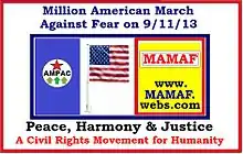 في 16 يوليو 2013، ذكرت وكالة أنباء الولايات المتحدة أنه من المقرر في شهر مارس تنظيم مسيرة لذكرى 11 من سبتمبر في نفس اليوم من قبل مؤيدي نظرية المؤامرة 9/11.[1] وفي 15 أغسطس 2013، ظهر السيد رابي علام على قناة فوكس نيوز الوطنية مع شان هانيتي، للدفاع عن مسيرة المليون مسلم. في اليوم التالي، ذكرت يو أس نيوز أنه قد تم تغيير اسم المسيرة إلى "سيرة مليون أمريكي ضد الخوف".[2] في 17 أغسطس، ذكرت فوكس نيوز أن لجنة العمل السياسي الأمريكي المسلم (AMPAC) قد واجهت رد فعل عنيف لتخطيطها للمسيرة.[3]