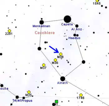مسييه 38 أو م38 (بالإنجليزية: Messier 38 أوM38 أو NGC 1912) هو تجمع نجمي مفتوح يوجد في كوكبة ممسك الأعنة.[1][2] اكتشفه جيوفاني هوديرنا قبل عام 1654. كما اكتشف هوديرنا التجمعين مسييه 36 ومسييه 37 وتبعد الثلاثة تجمعات عن الأرض نحو 3,420 سنة ضوئية (بالمقارنة : يبلغ قطر مجرة درب التبانة نحو 150.000 سنة ضوئية).