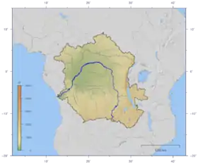 ينبع من جنوب شرق جمهورية الكونغو الديمقراطية (زائير سابقا)، ويعد ثاني أطول نهر في أفريقيا بعد نهر النيل، وأولها من حيث مساحة الحوض وثاني أكبر نهر في العالم من حيث الدفق المائي بعد نهر الأمازون حيث يلقي هذا النهر ما يزيد عن ألف مليار متر مكعب من المياه في المحيط الأطلسي حتى أن المياه العذبة تمتد لتصل إلى مسافة 30 كيلو متر داخل المحيط. يشمل حوض نهر الكونغو، الذي كان يعرف قديما بنهر زائير، عدة دول هي جمهورية الكونغو الديمقراطية والكاميرون وجمهورية أفريقيا الوسطى والغابون وجزءا من غينيا. وهو نهر عظيم من ناحية حجمه وتعقيده وكثره وجود القنوات فيه، وهو موطن لأنواع عديدة من الأسماك، ويخلق نظاما بيئيا غنيا جدا بتنوعه الحيوي.