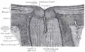 جزء من العصب البصري وداخل مقلة العين, مقطع عرضي.