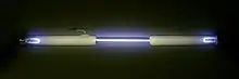 | الزينون | رمادي , وتحت تيار عالي يكون ما بين الأخضر والأزرق | يستخدم في مصابيح السيارات . | ![]() | |